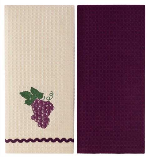Cluster of Grapes - 2 Pack Embroidered Kitchen Towels by Cotton Craft - 100% Pure Cotton Waffle Weave Construction - One towel is embroidered on an Ivory color base and the other towel is Purple - Generously sized at 18x28 - Brighten your kitchen at an outstanding price - Buy 5 and get free delivery Review