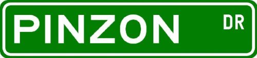 PINZON Street Sign ~ Personalized Family Lastname Sign ~ Gameroom, Basement, Garage Sign **. Made of Aluminum and High Quality Vinyl Letters and Graphics. This sign is 6 x 24 inches. Made to last for years outdoors, the sign is nice enough to display indoors too, comes with two holes pre-punched for easy installation and the corners are rounded. The item shipped will be exactly as shown in the picture (Unless you notify us otherwise i.e. a custom made order)