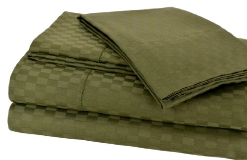 Elite Home Andiamo Check Collection Single Ply 500-Thread Count 100-Percent Egyptian Cotton 4-Piece Queen Sheet Set, Olive Review