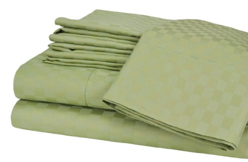 Elite Home Collection 6-Piece Savannah Check Single-Ply 500 Thread-Count Cotton Rich Queen Sheet Set, Sage Review