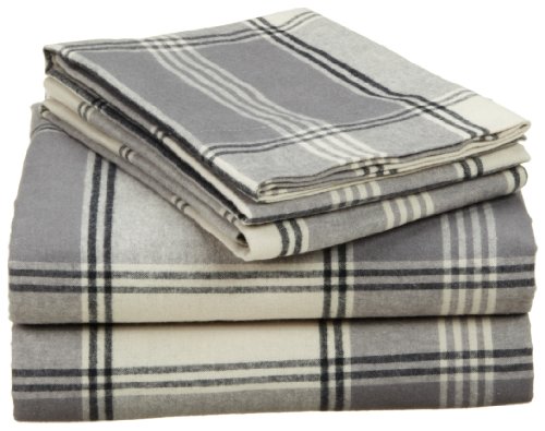 Pinzon 160-Gram Yarn-Dye Flannel Queen Sheet Set, Grey Plaid Review