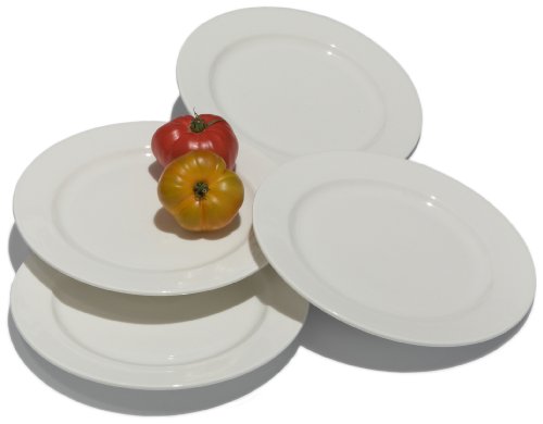 Tom Douglas by Pinzon Commercial-Grade 10-5/8-Inch White Dinner Plates, Set of 4 Feature